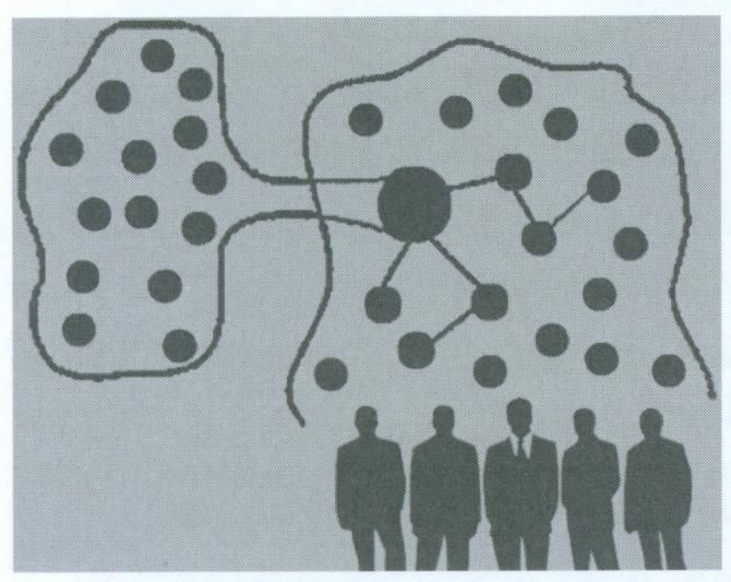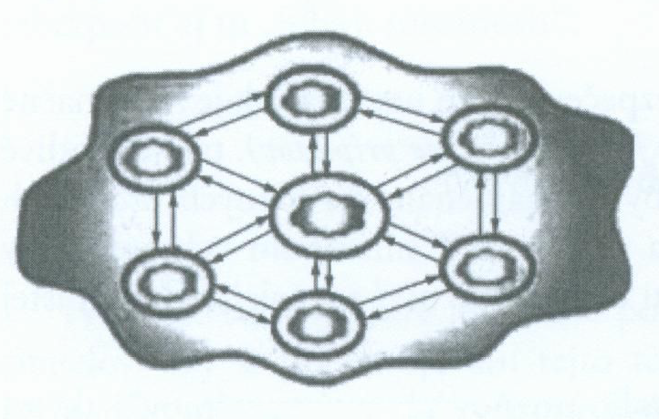 1. Pokud prvky tvořící supersystém samy disponují intelektem, tak při vzájemné informační výměně pravděpodobnostně-předurčeně generují souborný intelekt (obr. 12-97).